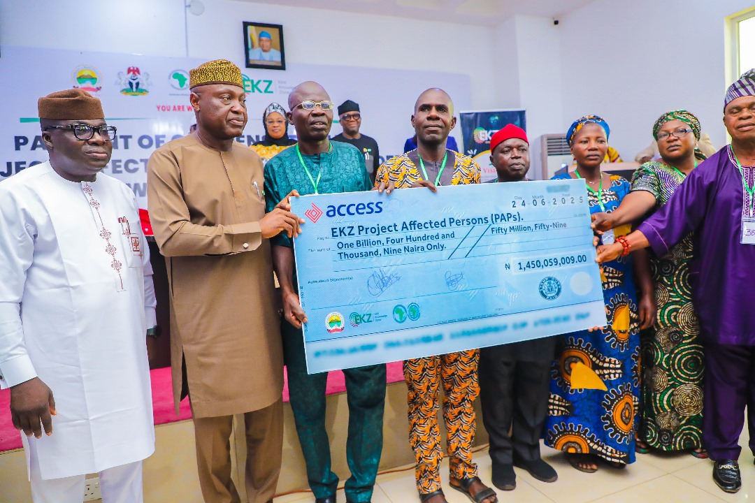 Ekiti State Governor, Mr Biodun Oyebanji on Tuesday presented over 1,450,000,000 Billion naira cheques as compensation to 195 indigenes of Ijan, Awo, and Araromi Ekiti, whose land were acquired for the Ekiti Knowledge Zone project.