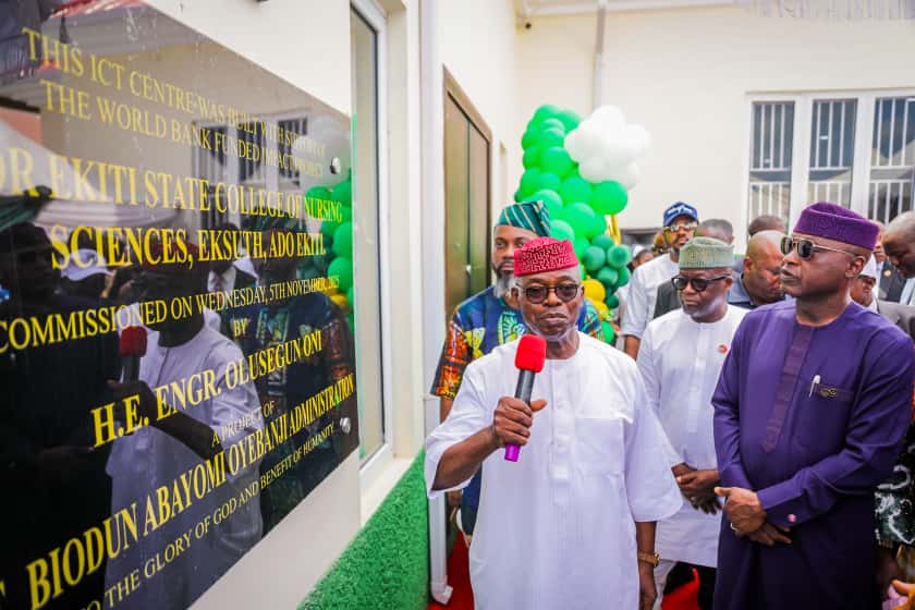 Governor Oni spoke during the official commissioning of a 250 capacity ICT Centre at the College of Nursing Sciences, Ekiti State University Teaching Hospital (EKSUTH), Ado- Ekiti on Wednesday, stressing the importance of information technology to educational development and overall development of the State.